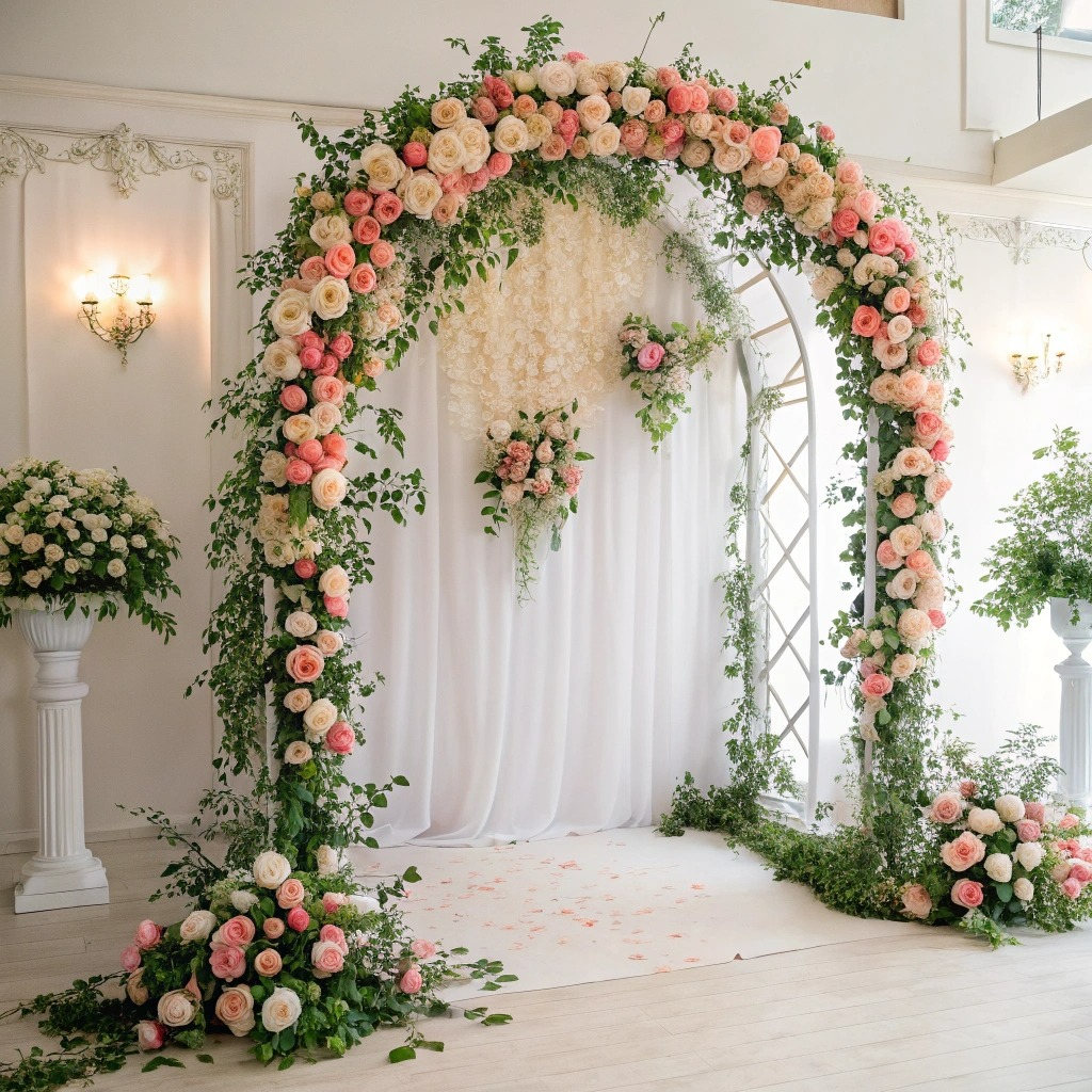 Флористичні фотозони для весілля з арками можуть бути різними: круглими, прямокутними, асиметричними або навіть підвісними. Важливо, щоб вони підкреслювали обраний стиль та гармоніювали з іншими декоративними елементами.