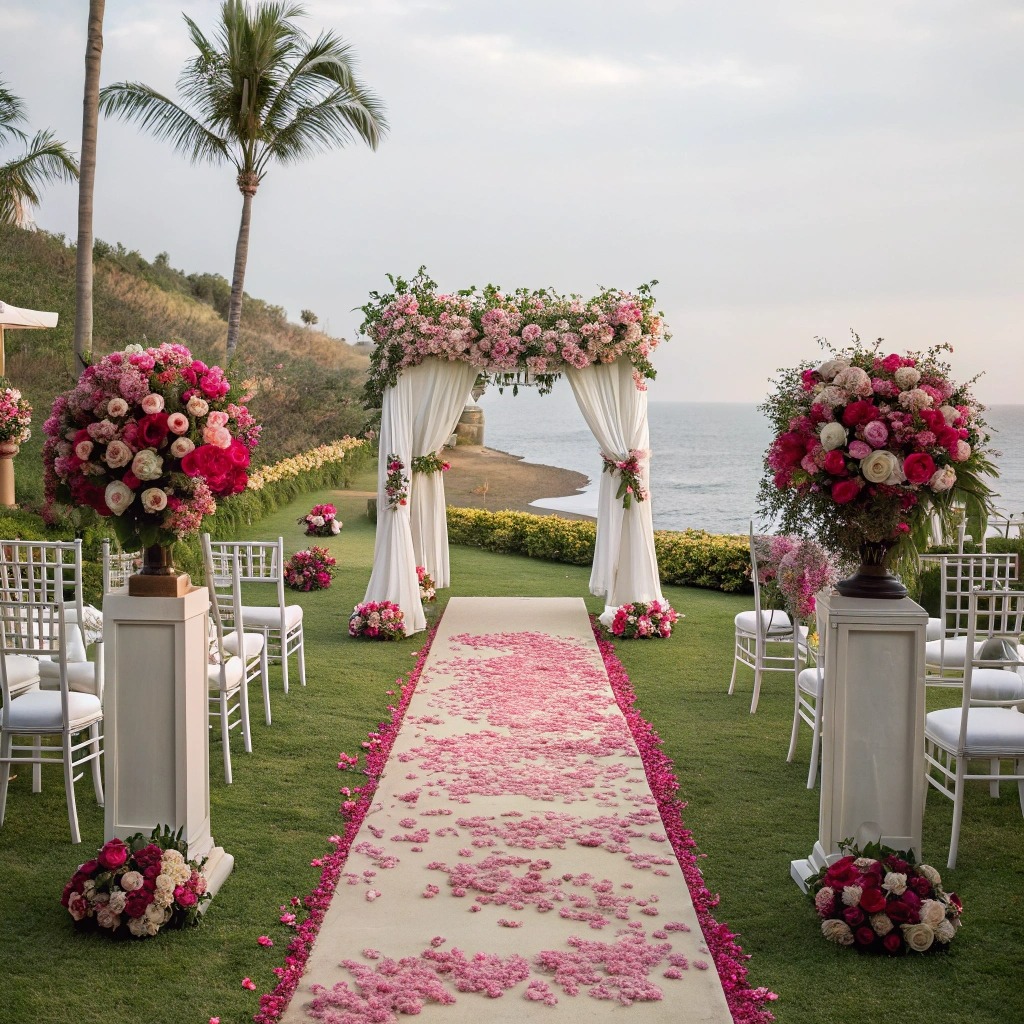 Оформлення весільної фотозони квітами починається з правильного вибору самих квітів. Серед найпопулярніших — троянди, півонії, орхідеї, ранункулюси та гортензії. Вони створюють пишні, елегантні та виразні композиції, які легко адаптуються до будь-якого стилю.