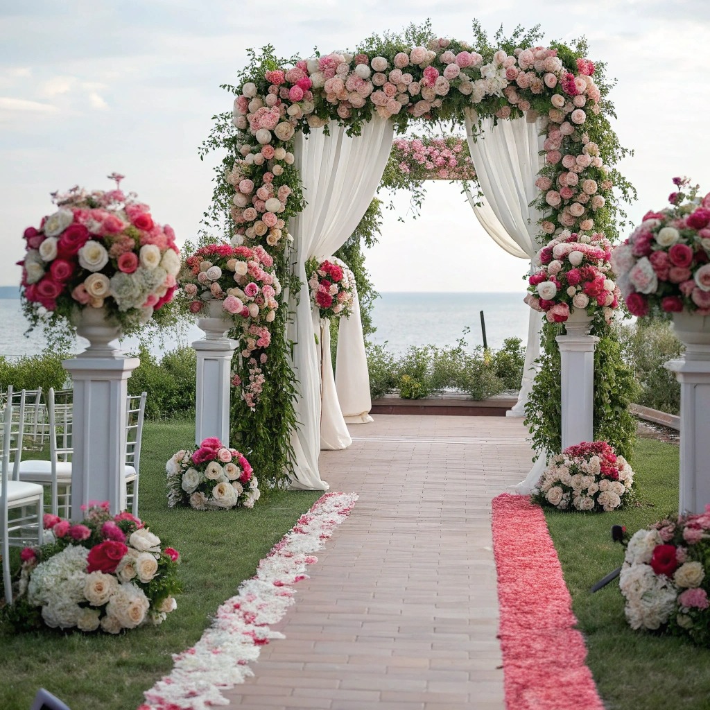 Квіткові арки — це візитна картка весільної фотозони. Вони одразу задають настрій церемонії, служать ідеальним фоном для перших фото молодят та створюють емоційний акцент. Оформлення весільної фотозони квітами у вигляді арки — символ єднання, вічності та краси.