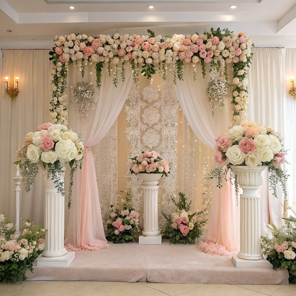 Класичні флористичні фотозони для весілля — це втілення елегантності та витонченості. Вони базуються на симетрії, світлій палітрі, гармонійному поєднанні пелюсток, зелені та м’якого декору. Найчастіше для оформлення весільної фотозони квітами використовуються троянди, гортензії, півонії й еустоми — рослини, які символізують ніжність та урочистість.