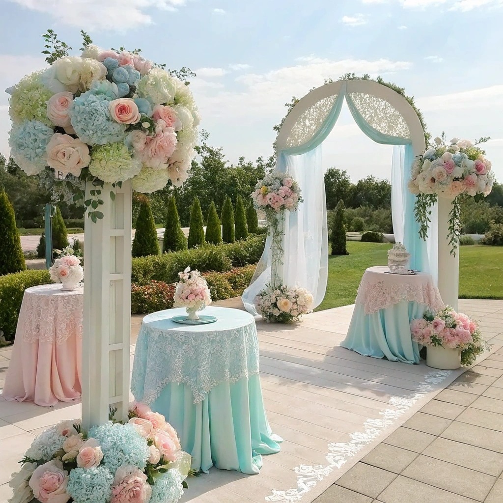 Пастельні квіти у весільному декорі — це спосіб наповнити простір світлом, легкістю та справжньою романтикою. Квіти в оформленні весілля в пастельних тонах створюють атмосферу спокою та витонченості, не перевантажуючи загальний стиль, а навпаки — додаючи гармонійних акцентів. Весілля у пастельних тонах — це не лише про колір, а про цілісну емоцію, яку передають композиції на столах, арках, фотозонах і навіть у дрібних деталях. У цьому розділі йтиметься про те, як за допомогою квітів ніжних відтінків перетворити простір на естетичне й тепле місце для свята: що вибрати для банкетної зони, як оформити арку для церемонії чи де доречно розмістити невеликі композиції з пудрових бутонів. Оформлення простору весілля у пастельних кольорах квітами в пастельній палітрі — це продовження стилю самої пари, її бачення краси та витонченості.