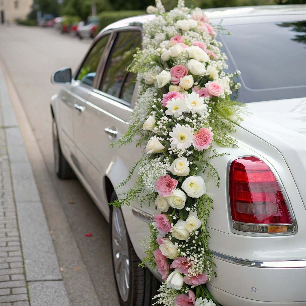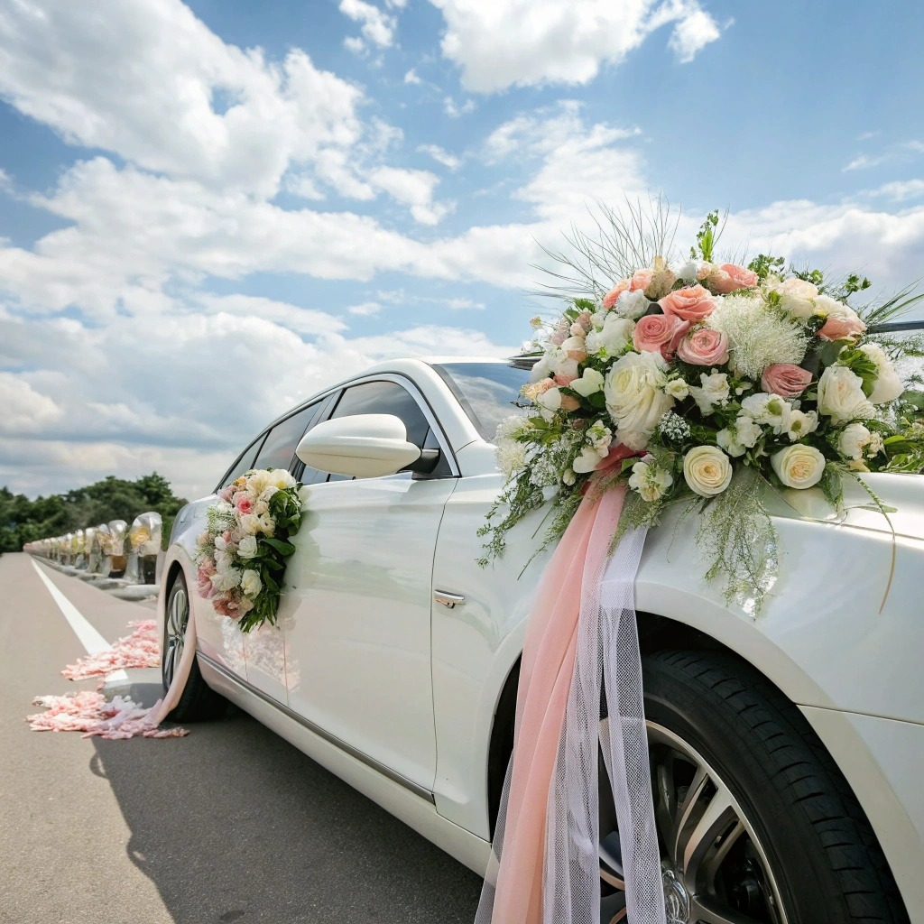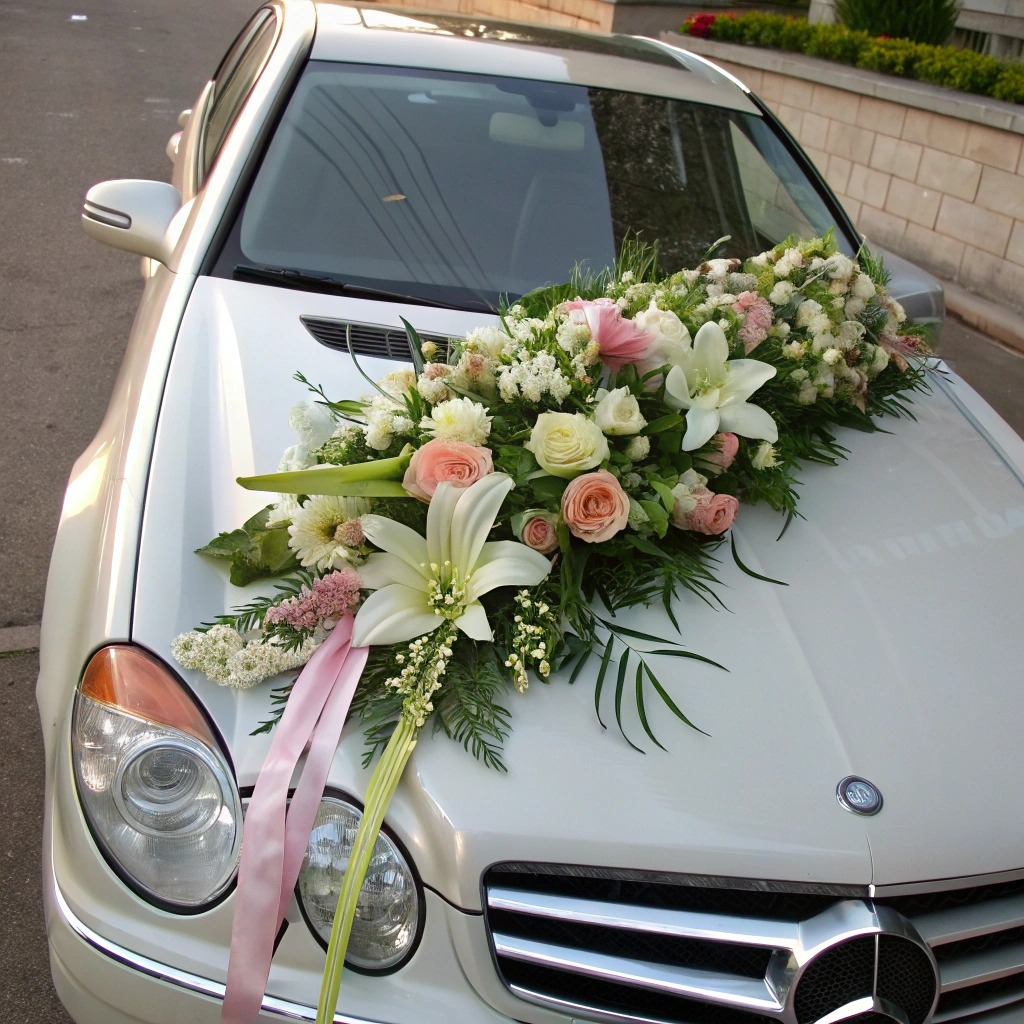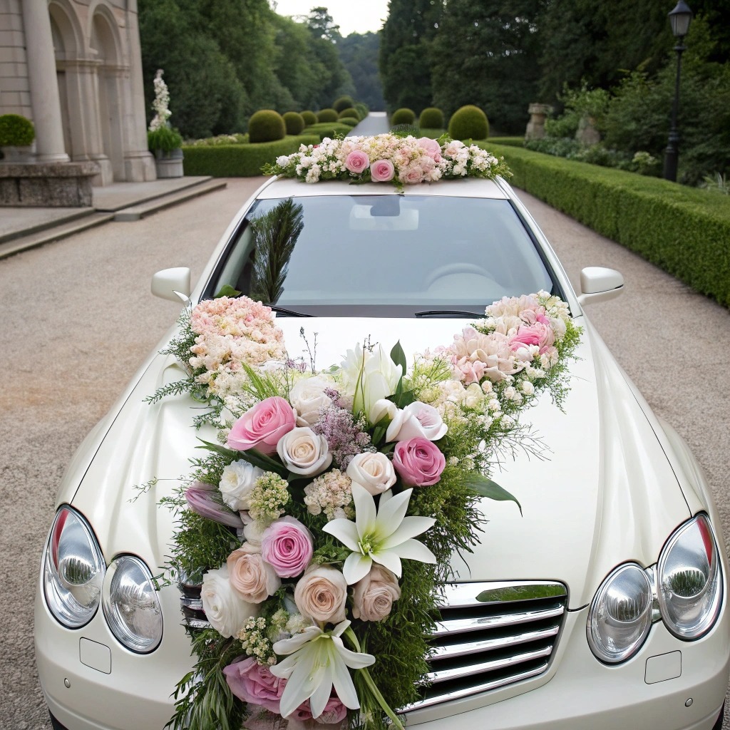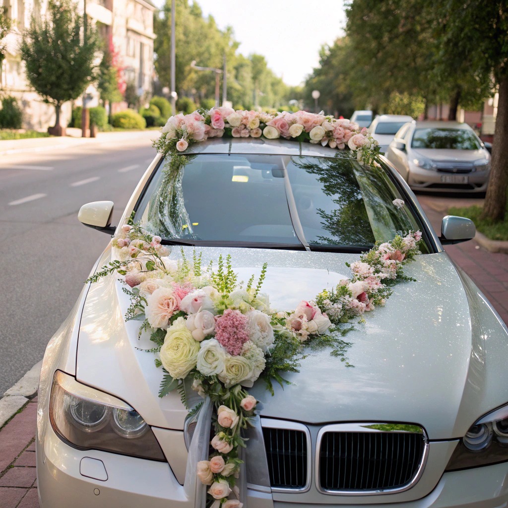 Флористичні прикраси на авто стають логічним продовженням стилю: чи це легка пелюсткова гірлянда на капоті, чи пишна арка з живих квітів на даху святкового транспорту. Квіткове оформлення підтримує єдність образів нареченої, залу, фотозони, та навіть запрошень. Це створює естетичну атмосферу, у якій кожна деталь — від сукні до капота весільного авто — спілкується однією мовою романтики, стилю та смаку.